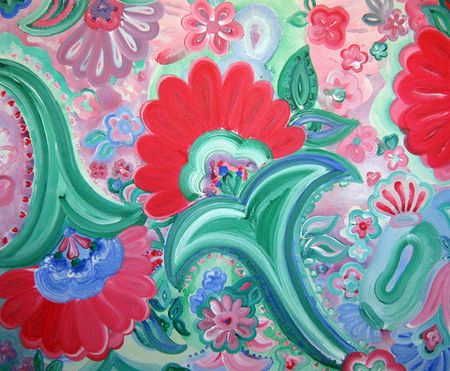 Paintings based on specific originals of textile patterns that were part of my home. First I worked with a literal transcription of the pattern and observed the transformation of banal prints into a painting. Later I reopened the topic again and tried to interpret a memory or the dynamics of a feeling, i.e. the mental process during which the imagination can turn a banal original into an aesthetically strong motif through emotional attachment.